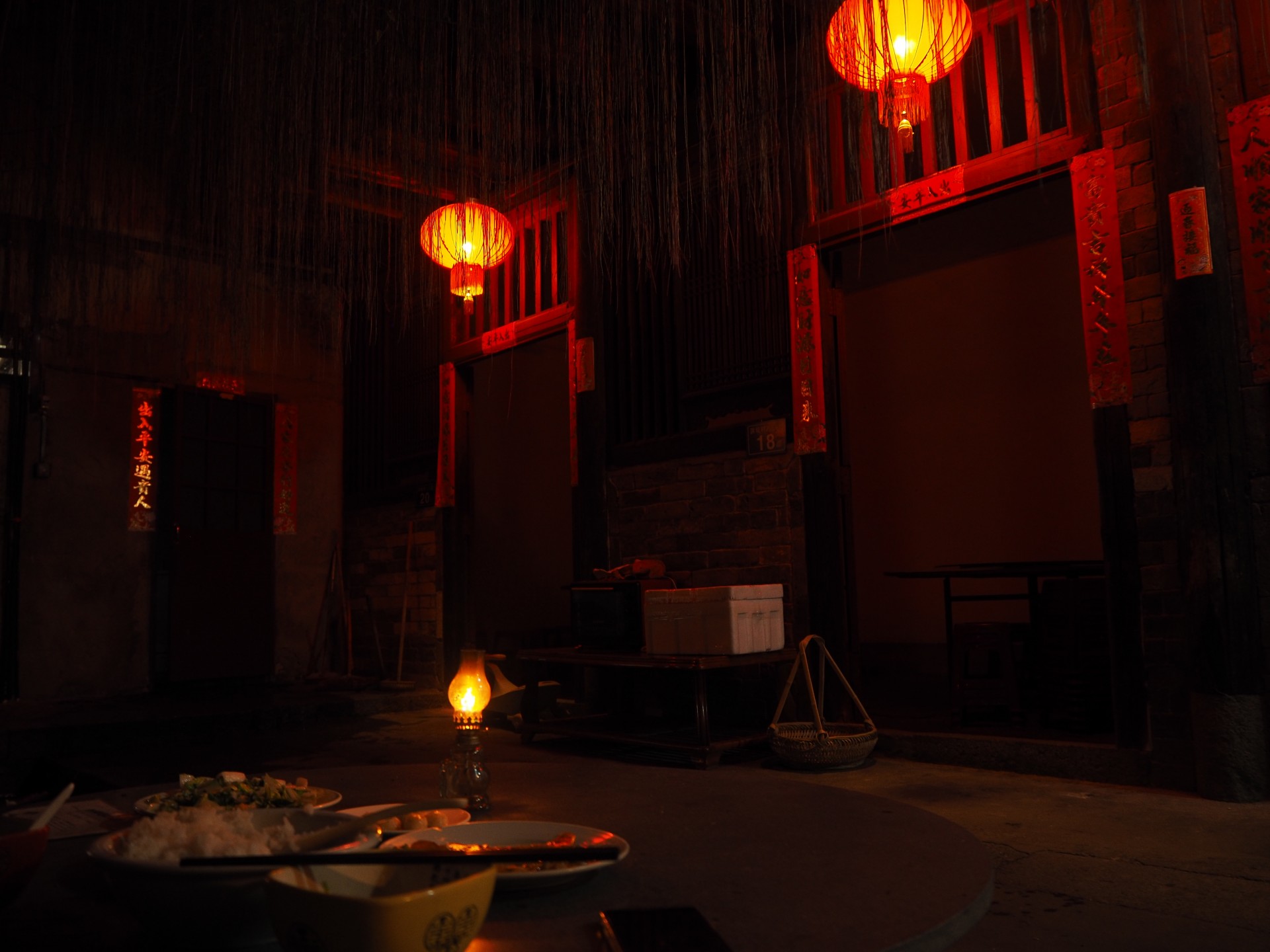 Dinner by lantern light.